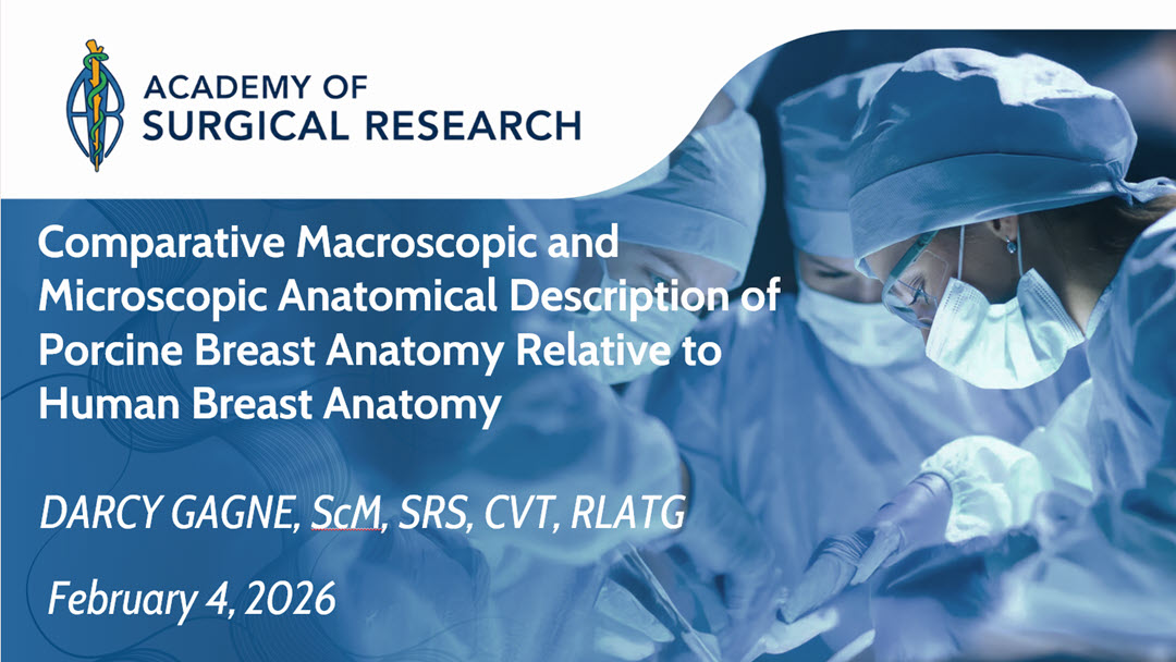 Robert Siebert2026-02-26T03:29:53-06:00Overview: Porcine mammary anatomy is poorly defined and often difficult to differentiate macroscopically. This webinar presents findings from a comprehensive study examining both the macroscopic and microscopic anatomy of porcine breast tissue and comparing it to human breast anatomy. What Will Be Covered: Characterization of porcine mammary macro- and microanatomy Comparison of porcine and human breast tissue anatomy Tissue preparation methods and their impact on visualization Key anatomical findings relevant to research and surgical models